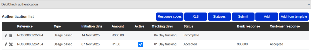 DebiCheck authentication response codes