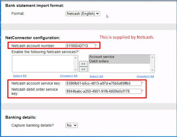 Two Netcash service keys are required