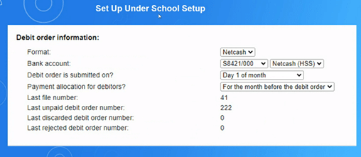 Important: Debit orders cannot be loaded unless the parent has completed their Netcash forms and Netcash has received them.