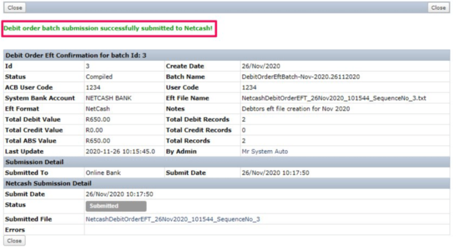 - Debit order submission