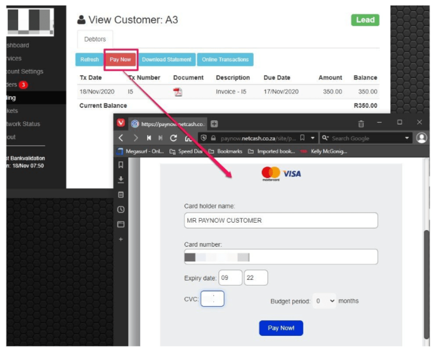Navigate to Netcash> Account Profile > Netconnector> Pay Now