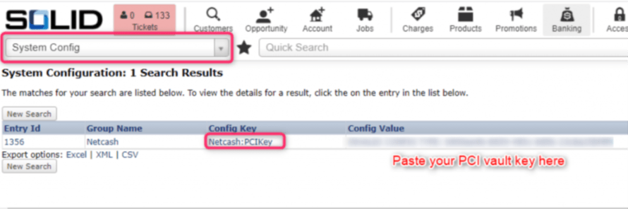 To load other Netcash keys and enable Netcash functionality on SOLID: Module ID 7: System Config