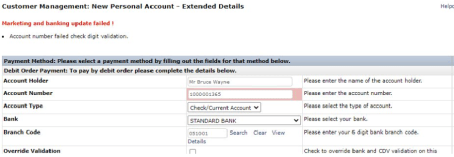 Debit Order Detail Validation