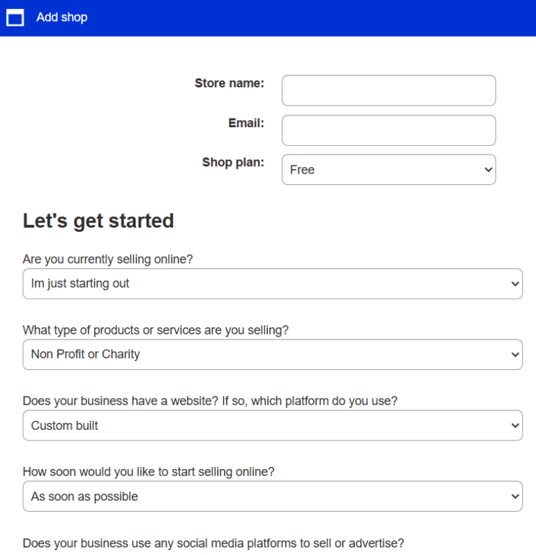 - You will be presented with a pop-up to input your Shop information.