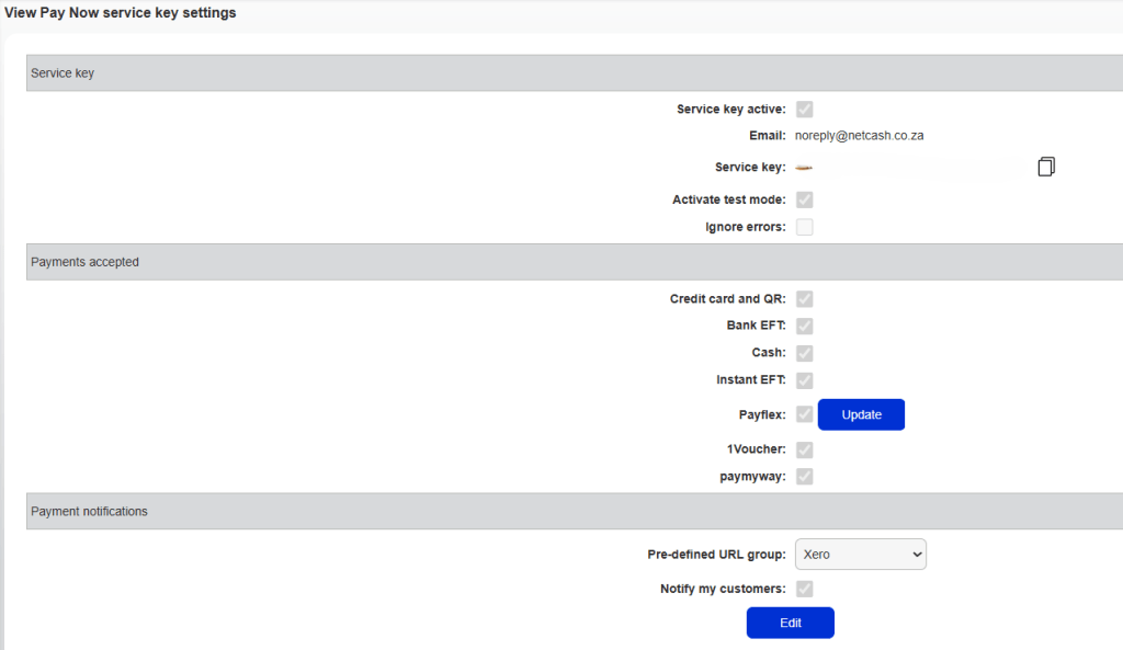 Once you have created your Pay Now service key, you can copy and paste the Pay Now service key into the space provided in your Netcash Shop control panel.