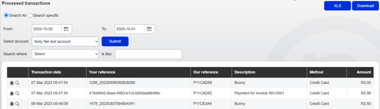 - Click on Reports > Processed transactions.